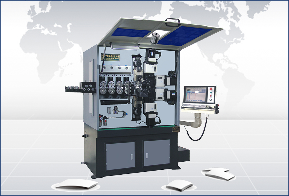 適合于生產各種壓簧、矩形簧、鋼皮蝸卷簧、塔形簧、雙扭簧、扁簧等高難度異形彈簧,極大的增加了彈簧加工范圍。